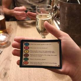 After sitting down at our table we were instantly loving the cute addition of Trivial Pursuit cards on every table. This is an awesome way to break the ice if you’re on a first date or just generally a lovely idea for passing time inbetween courses.